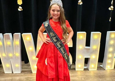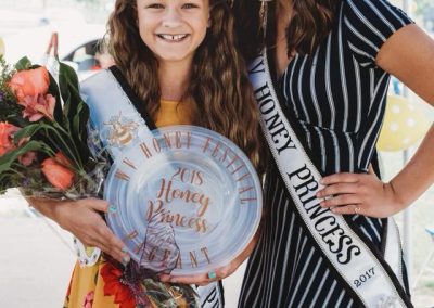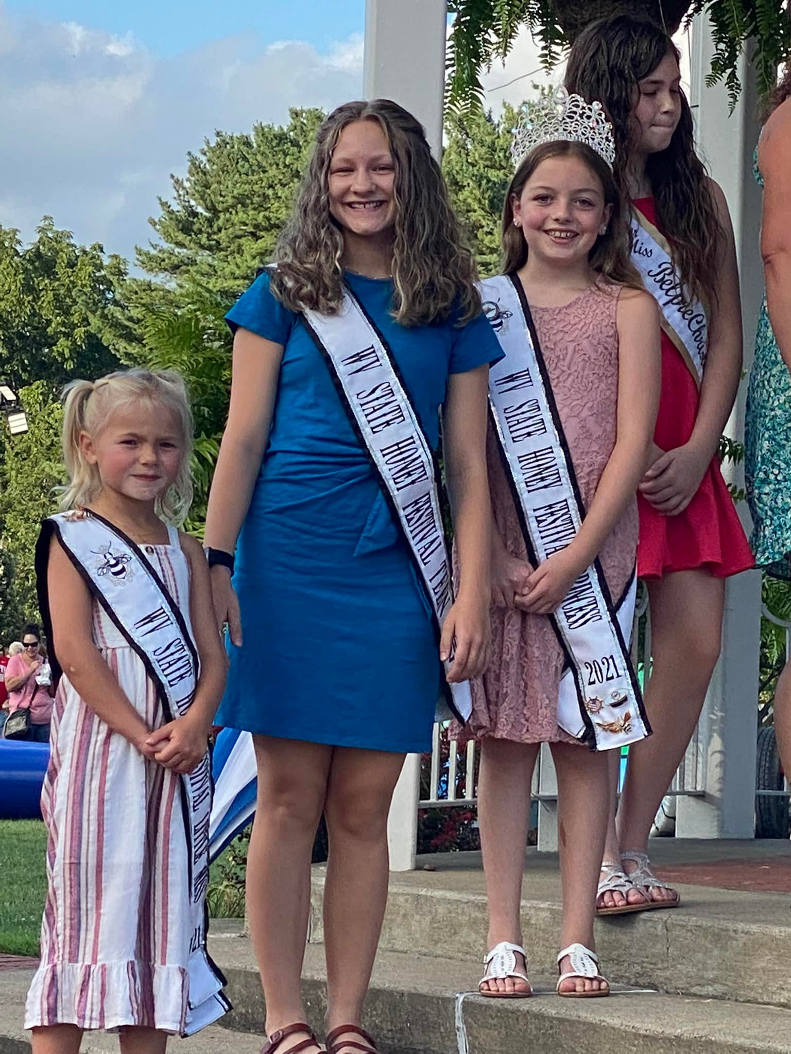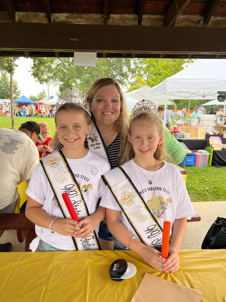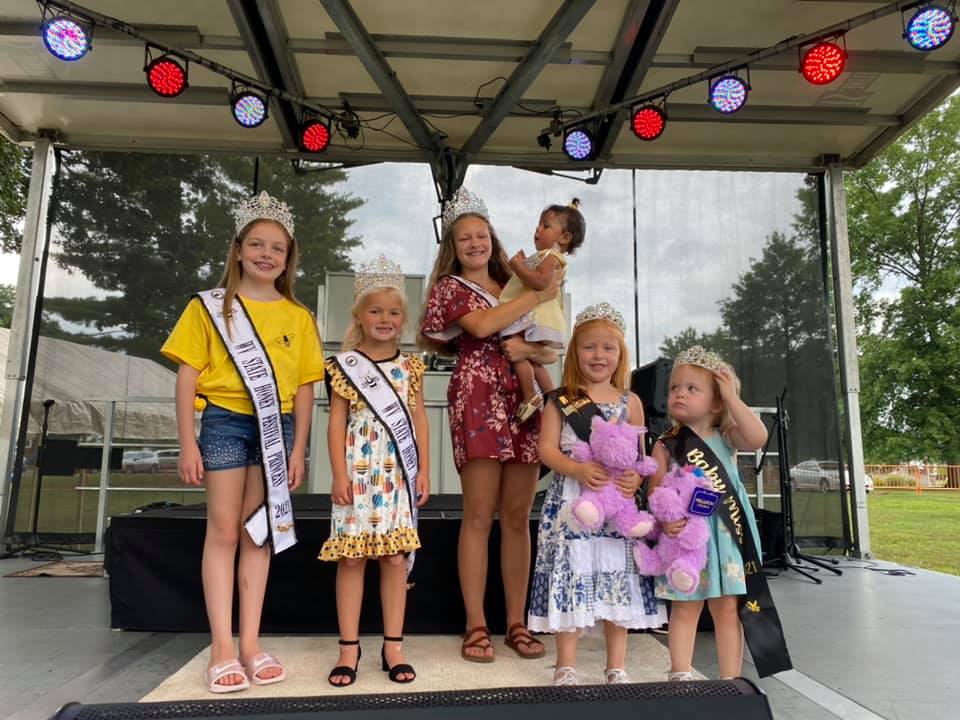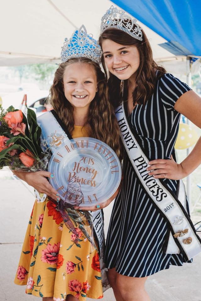 The WV State Honey Festival began to celebrate the importance of honey, beekeeping, and pollinators in West Virginia. Not long after, the festival introduced the Honey Princess Pageant, giving young girls a chance to represent the festival and share in its sweet traditions. By the early 2000s, the event had expanded to include multiple divisions, with contestants serving as junior ambassadors—appearing in parades, attending community festivals, and promoting the importance of honey and agriculture throughout the state. The children’s pageant started in 2022 and is the opening event for the Honey Festival itself.