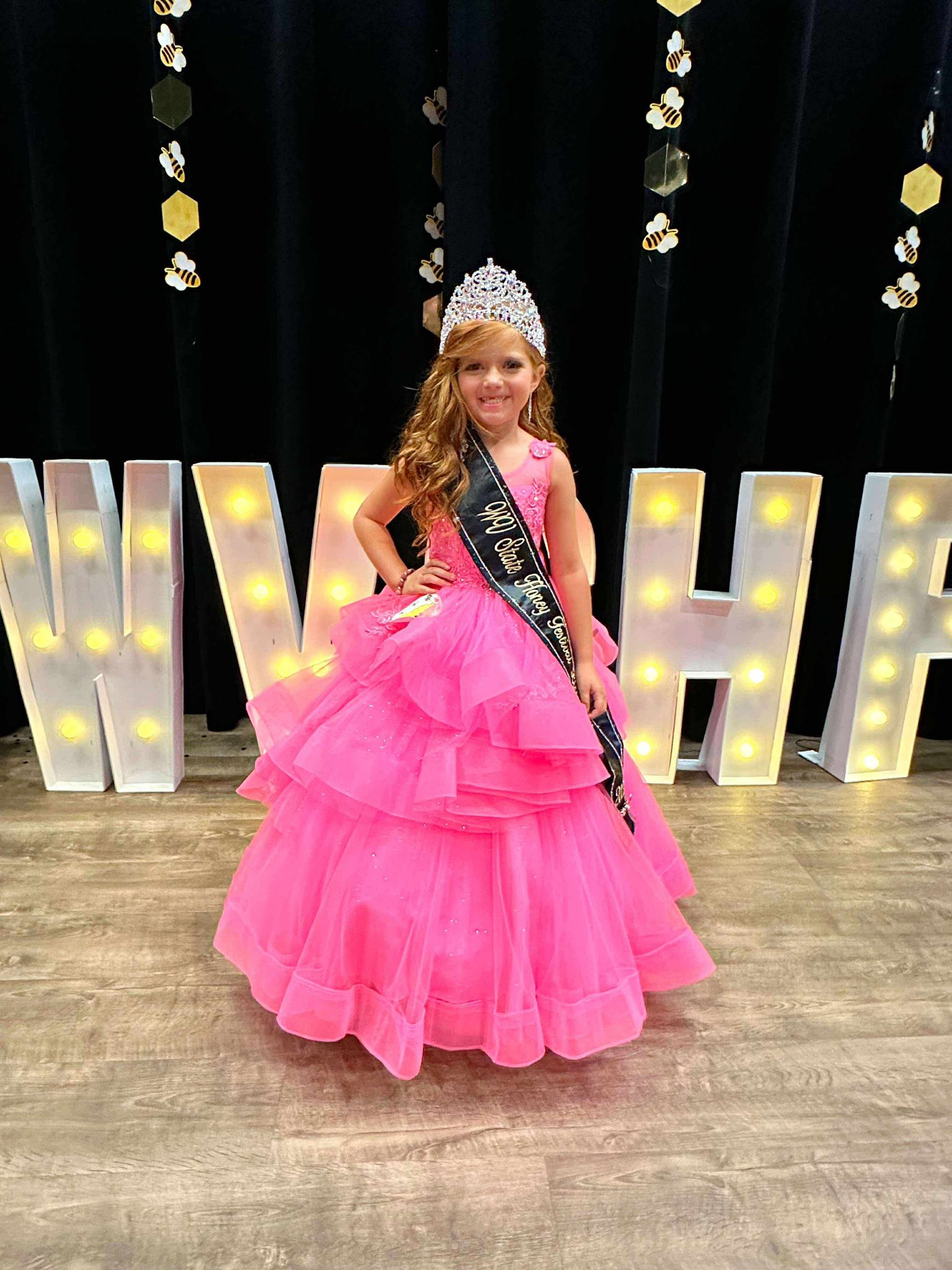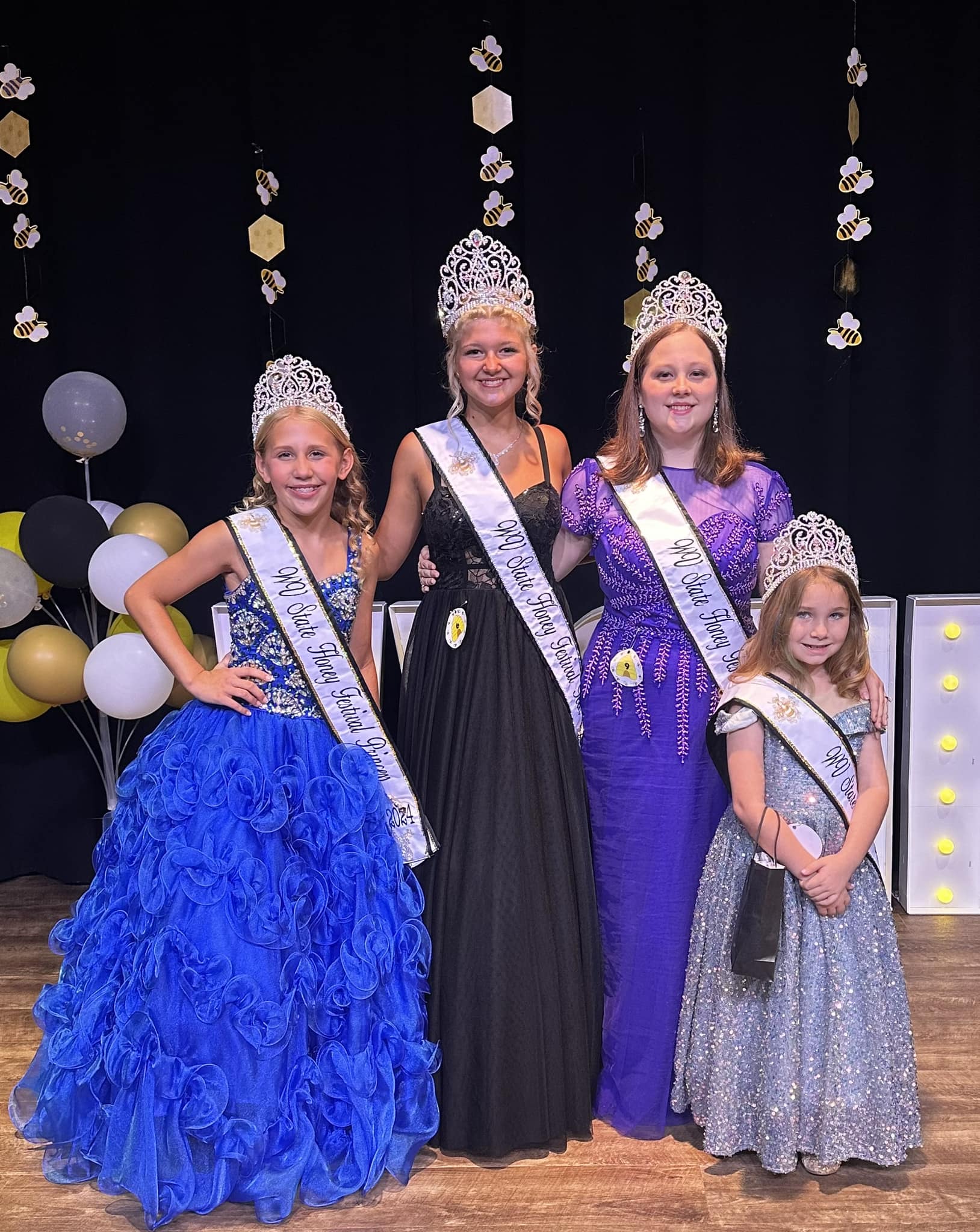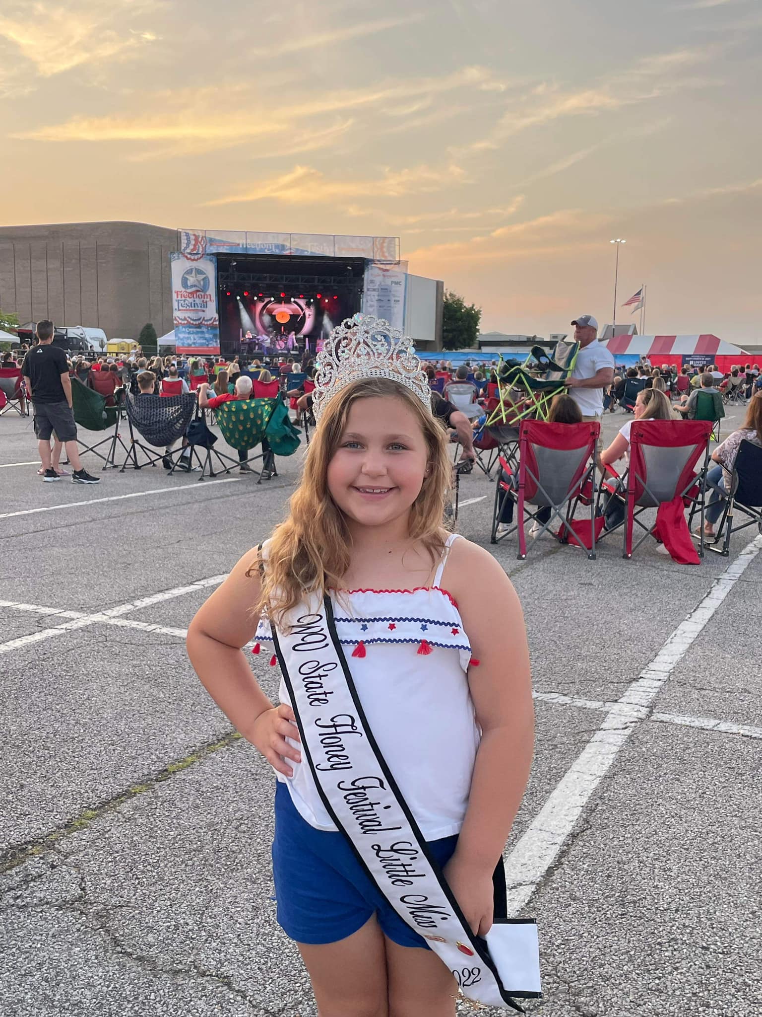 The WV State Honey Festival began to celebrate the importance of honey, beekeeping, and pollinators in West Virginia. Not long after, the festival introduced the Honey Princess Pageant, giving young girls a chance to represent the festival and share in its sweet traditions. By the early 2000s, the event had expanded to include multiple divisions, with contestants serving as junior ambassadors—appearing in parades, attending community festivals, and promoting the importance of honey and agriculture throughout the state. The children’s pageant started in 2022 and is the opening event for the Honey Festival itself.