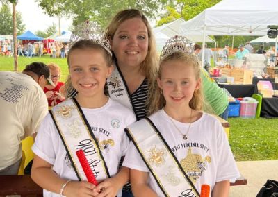 From its beginnings with a single princess title to today’s full court of queens, princesses, and tots, the pageant continues to play an important role in the Honey Festival. Each winner becomes a visible representative of the event and its mission—carrying on over 40 years of tradition while educating the public about honey, pollinators, and West Virginia’s agricultural heritage.